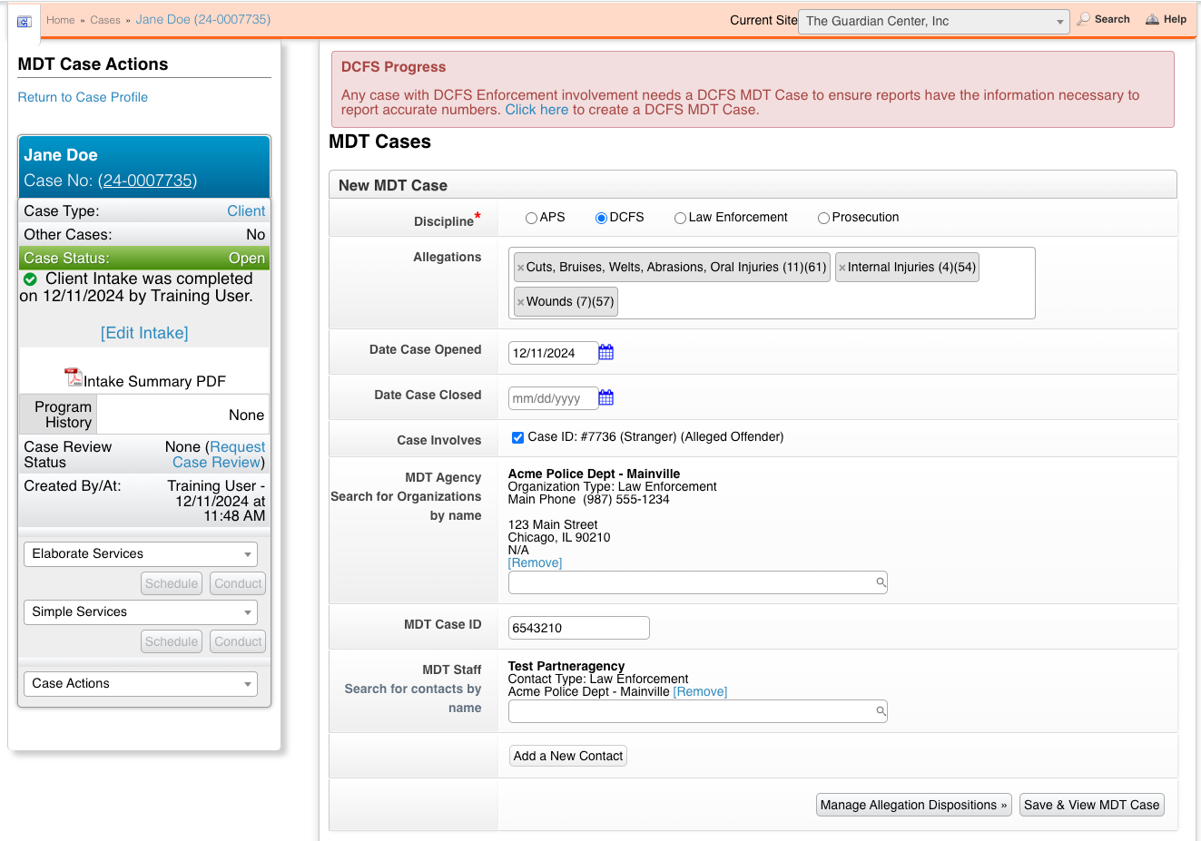 Click the link in the banner to begin the process of creating an MDT Case Record.