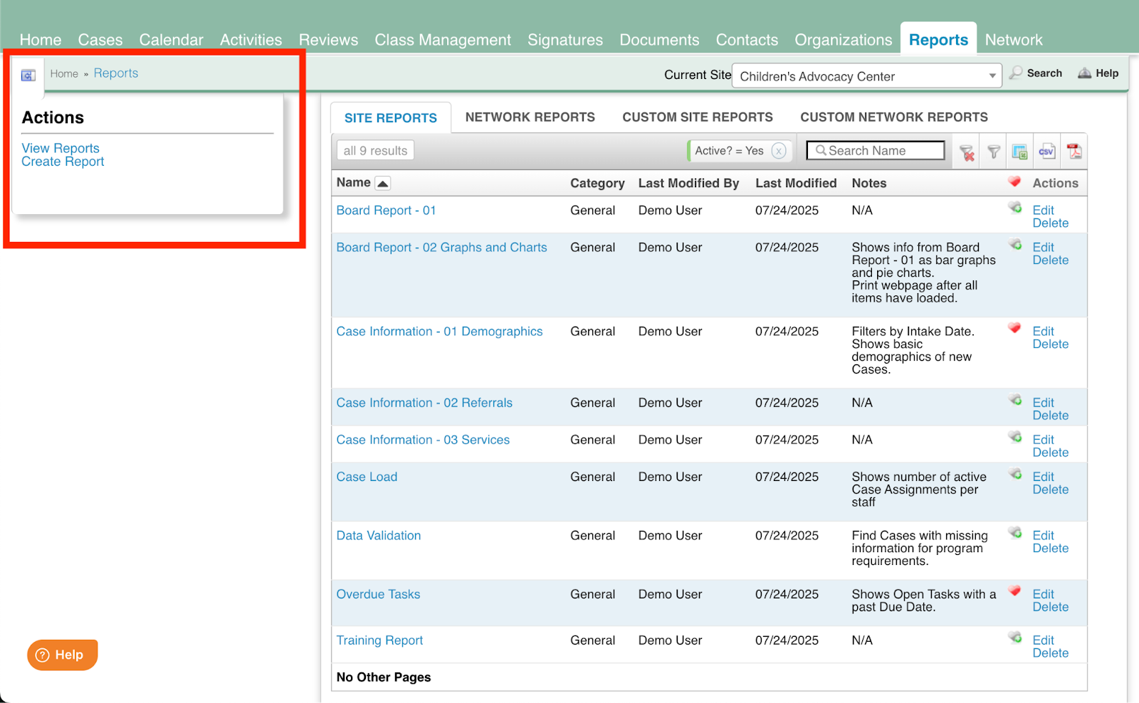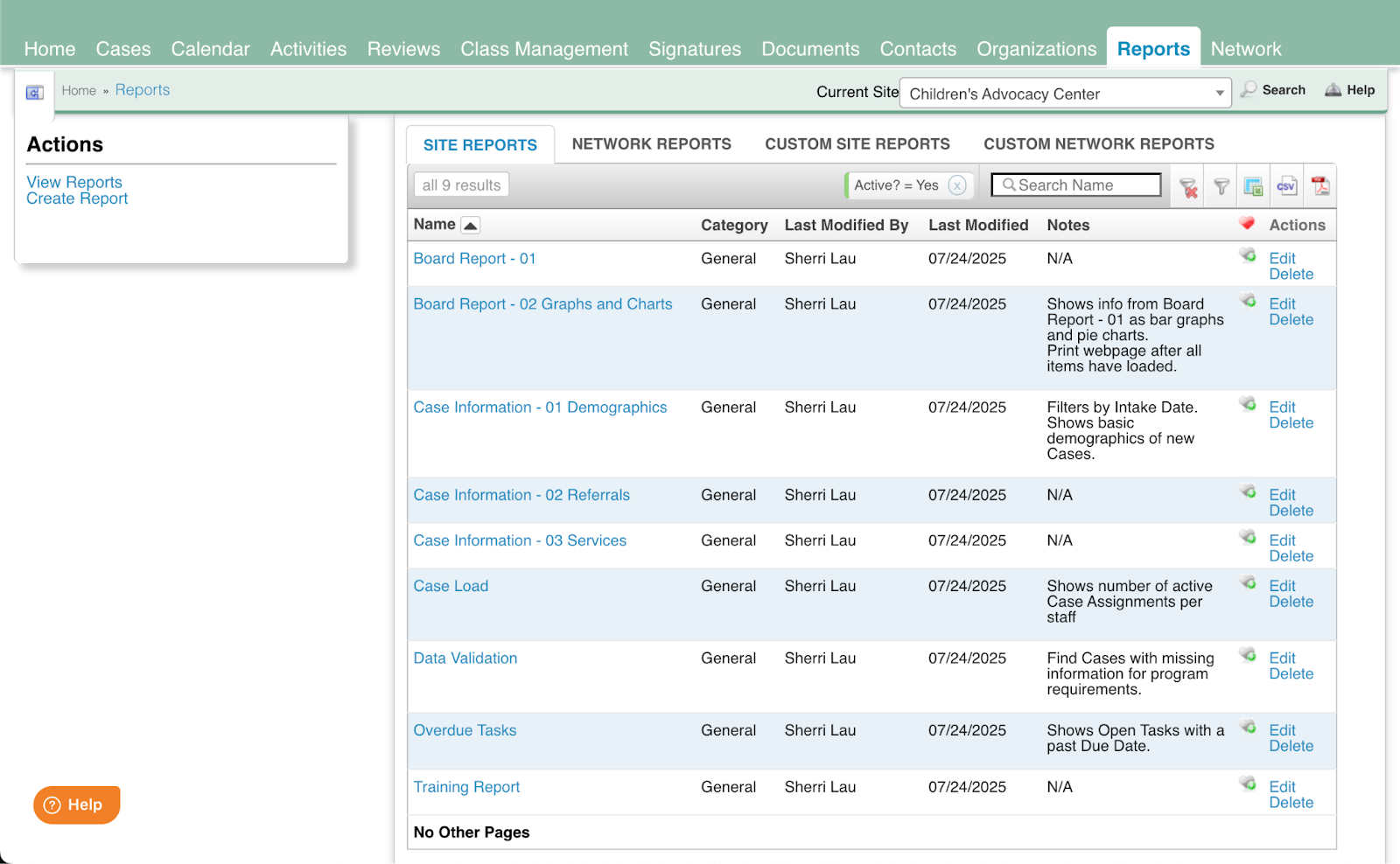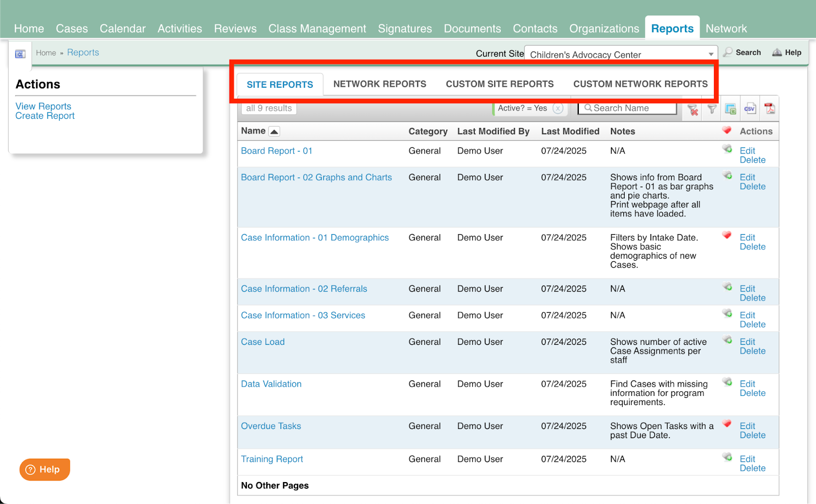 There are two types of Reports in Collaborate: Dynamic Reports, and Custom Reports. The first type of reports, Dynamic Reports are created using Collaborate’s internal report builder. These reports can be created and modified in real-time to adapt to new needs. These reports are found in the Site Reports and Network Reports tabs.