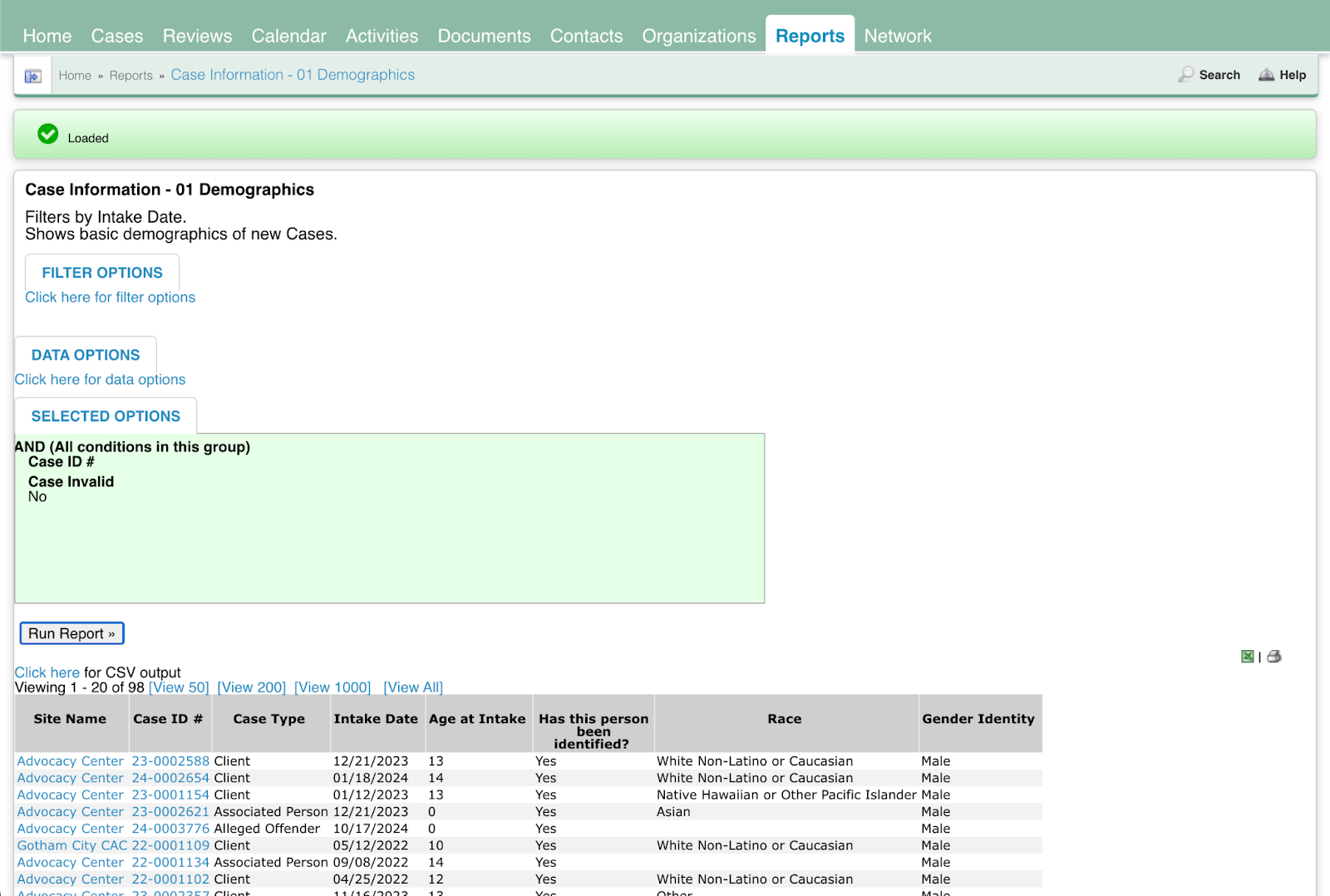 To run the report with the default settings and filters applied, click the “Run Report” button.
