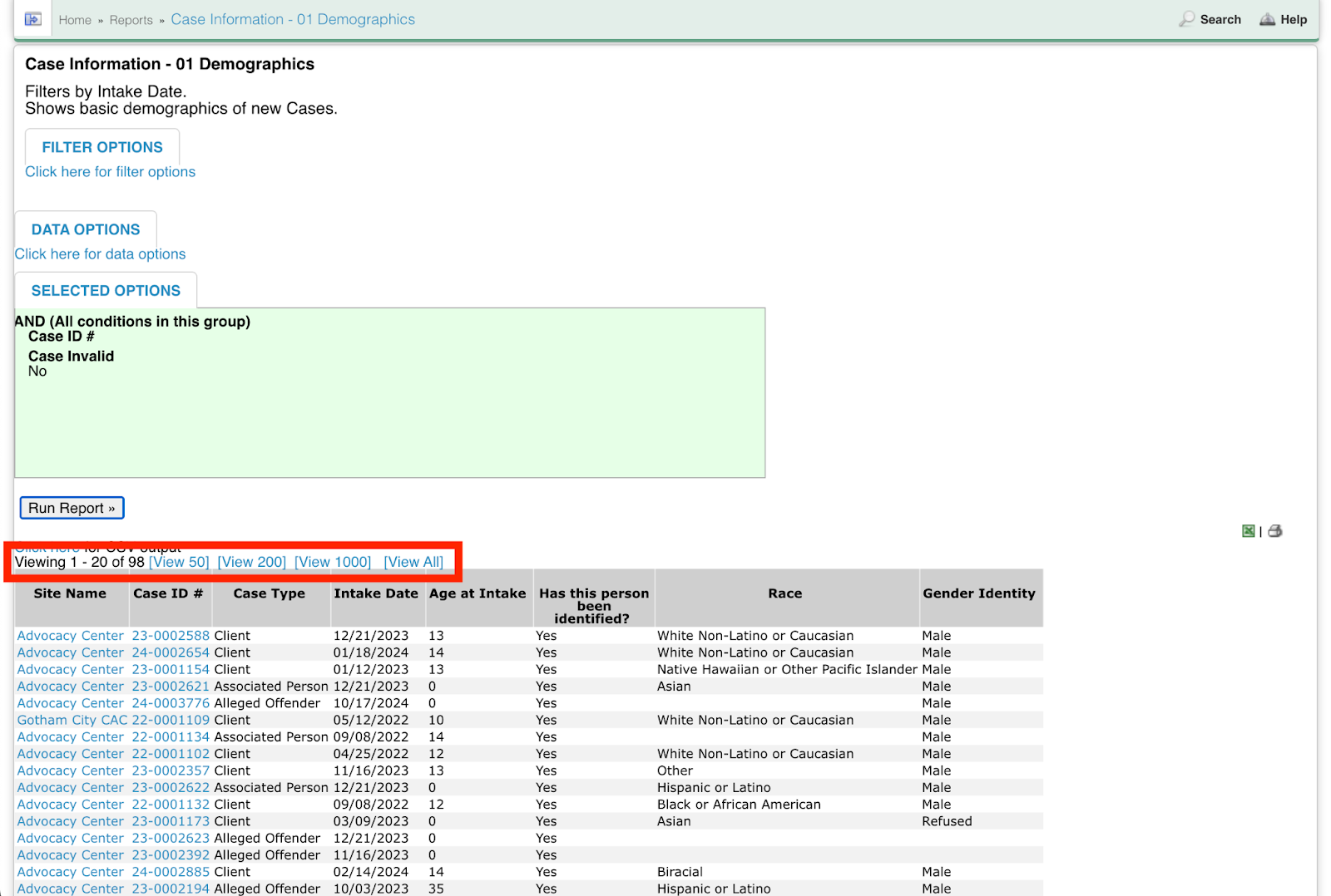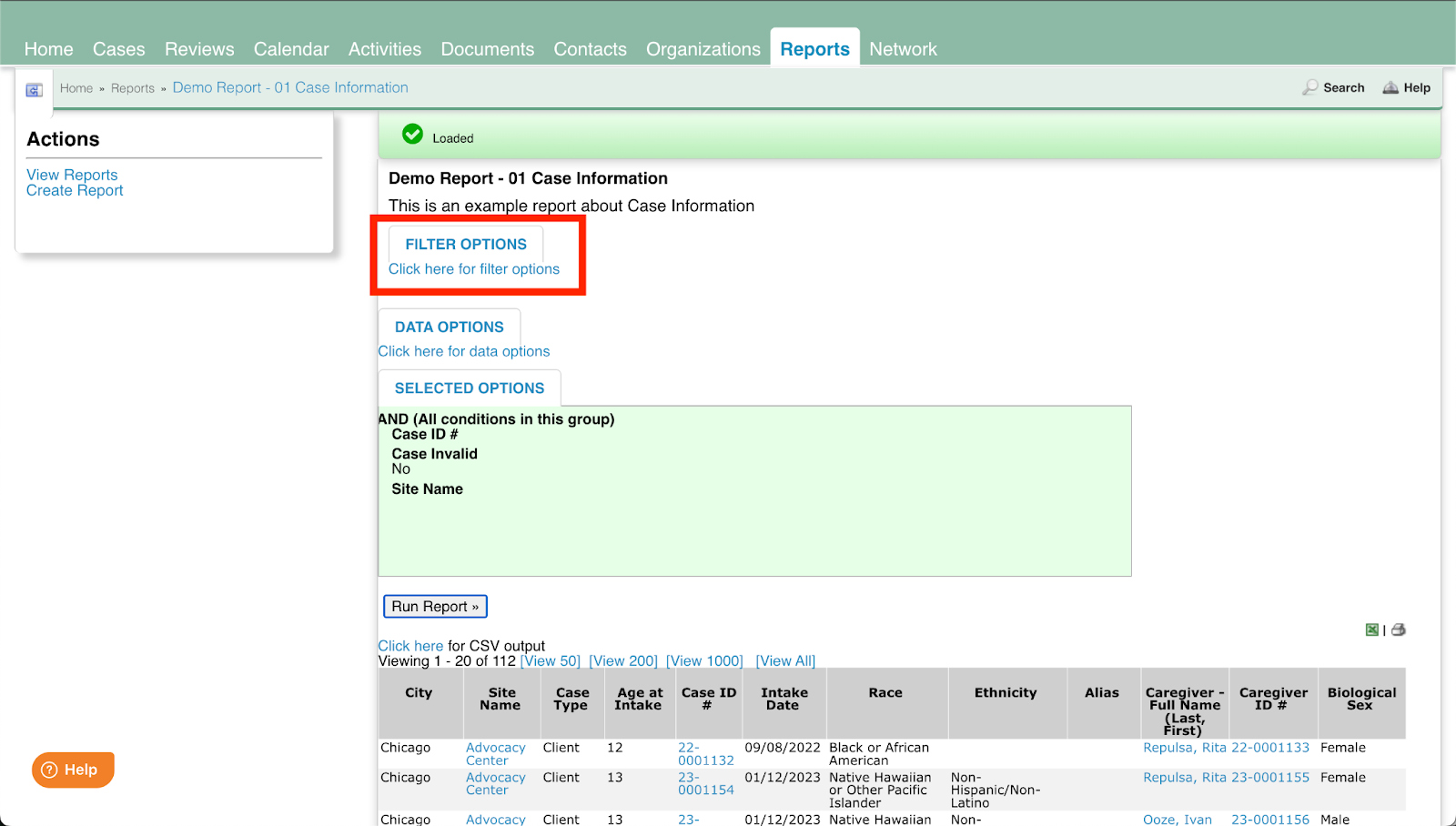 Filter options allow Users to change the criteria/parameters/filters that are being applied to the report results. To learn more about how to use Filter Options, please see the article titled “Filter Options.”